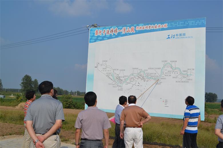 9月7日下午,五河县人大常委会副主任刘彦璀、王成图及农工委委员在县委常委、副县长丁云红、县水利局局长曹玉门的陪同下,到淮河蚌浮段行洪区调整和建设工程施工现场视察工作开展情况。