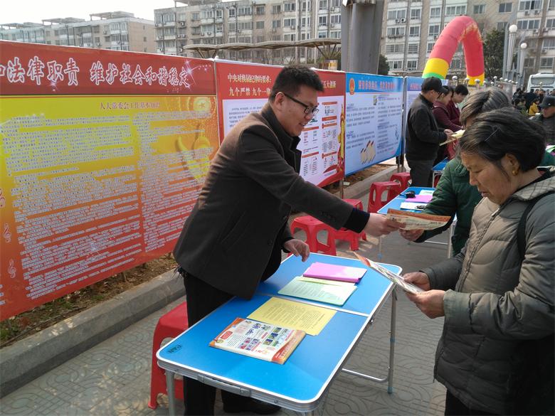 3月25日上午,五河县综治委组织各成员单位在青年圩广场组织开展综治集中宣传日活动,县人大常委会以此为契机,组织单位法学青年干部参与其中。