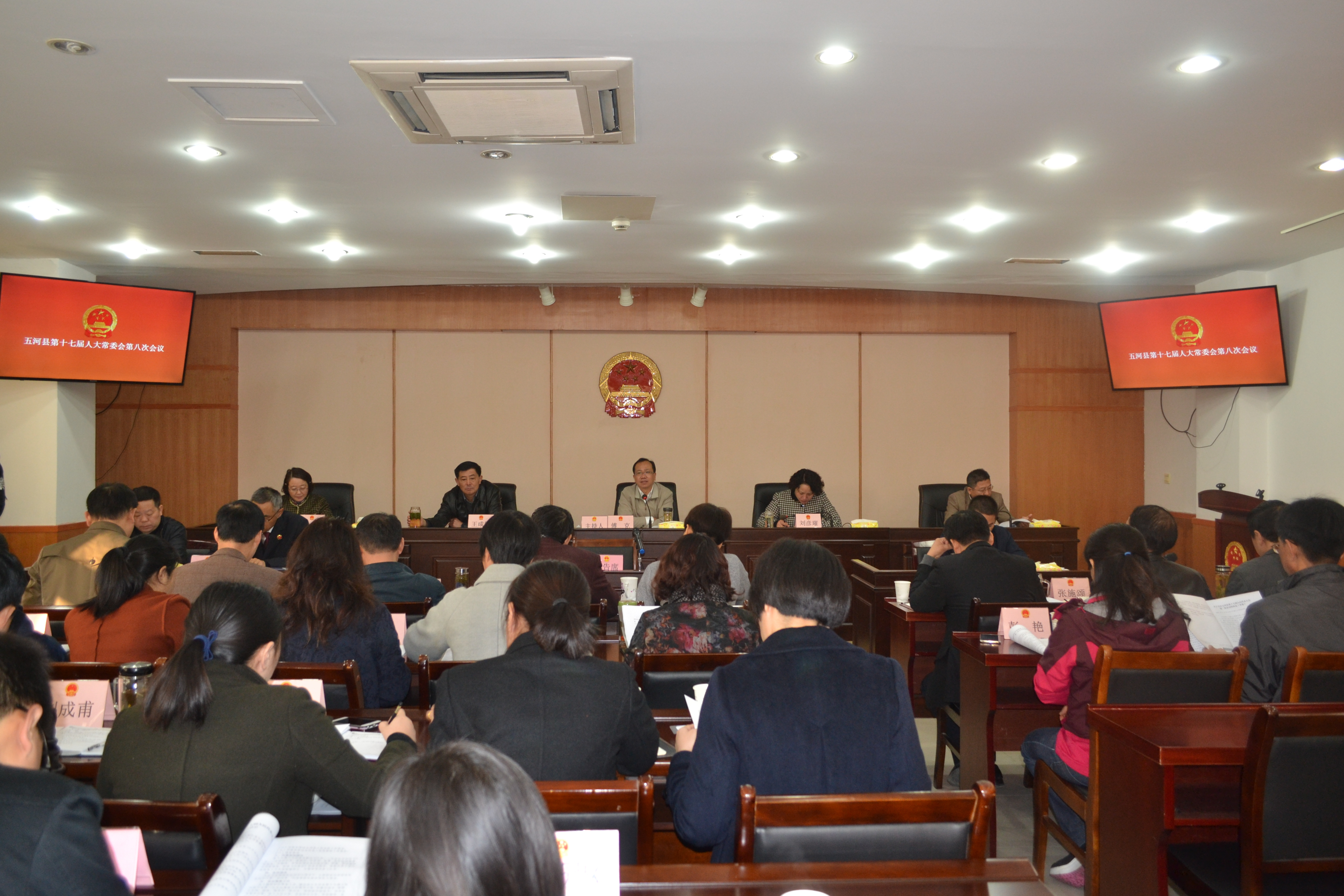 11月15日上午,县十七届人大常委会第八会议在县人大常委会议室召开。县人大常委会党组书记、主任傅克,副主任刘彦璀、王成图、黄国胜、安琪出席会议。会议由傅克主持。