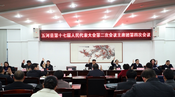 12月8日下午, 县十七届人大二次会议主席团在会议中心一楼会议室举行第四次会议,县委副书记宋健主持会议。